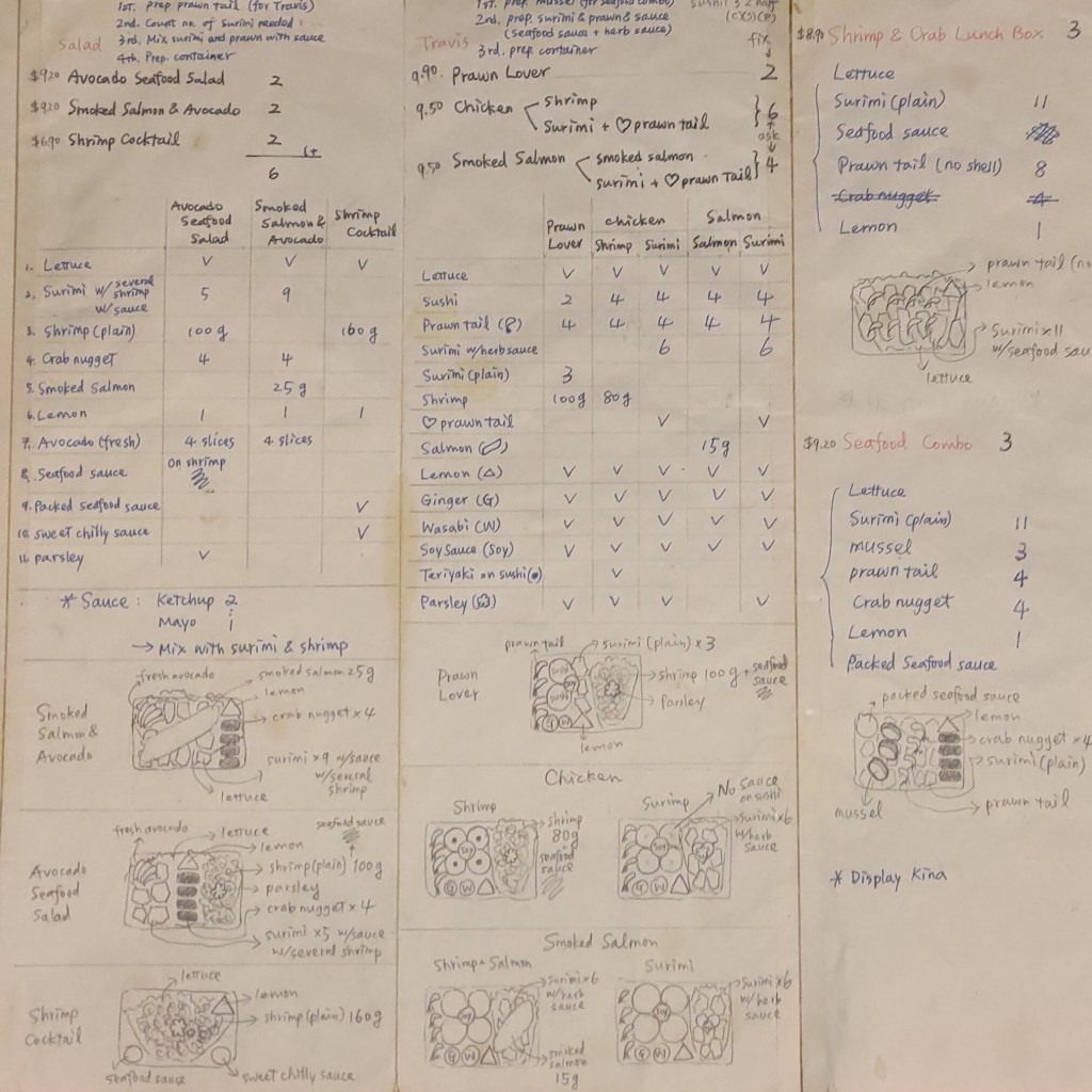 於是,臉皮薄的我又完美主義上身,製作了一份「大抄」,忘記這個忘記那個時,趕快拿出來瞄一下,休息時間看一下收銀機的配置圖,心裡默記各個選項位置。六週之後總算是完全上手了!大嬸的記憶力果然是比不上來打工渡假的小鮮肉們。